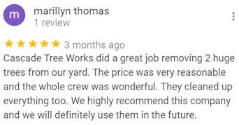 At Cascade Tree Works our pledge is to establish lasting relationships with our customers by exceeding their expectations and gaining their trust through exceptional performance by every member of our tree service team.